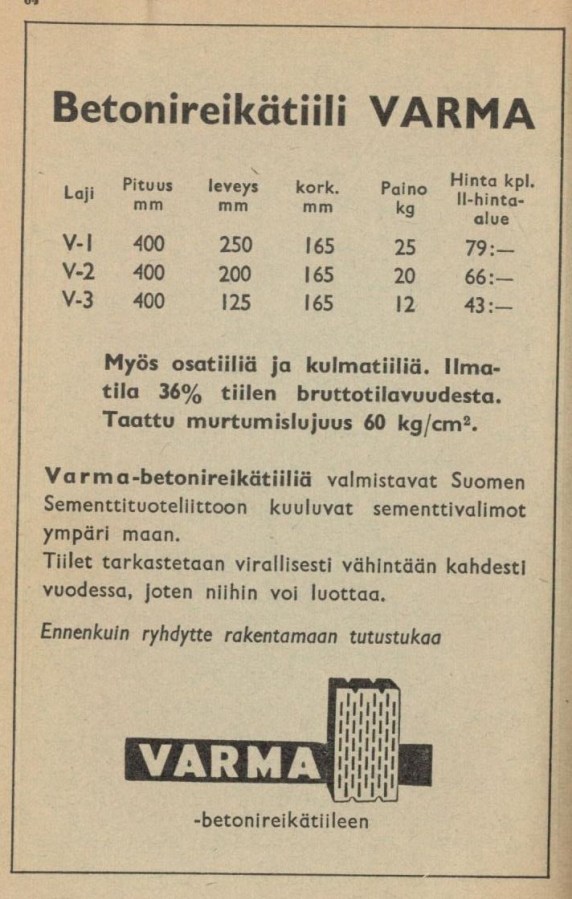 Betonireikätiili. 1955