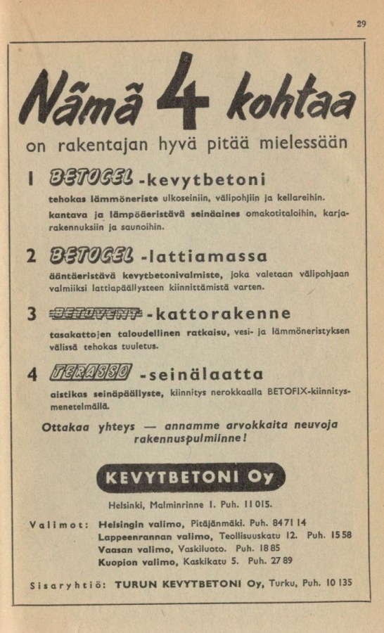 Kevytbetoni. 1955