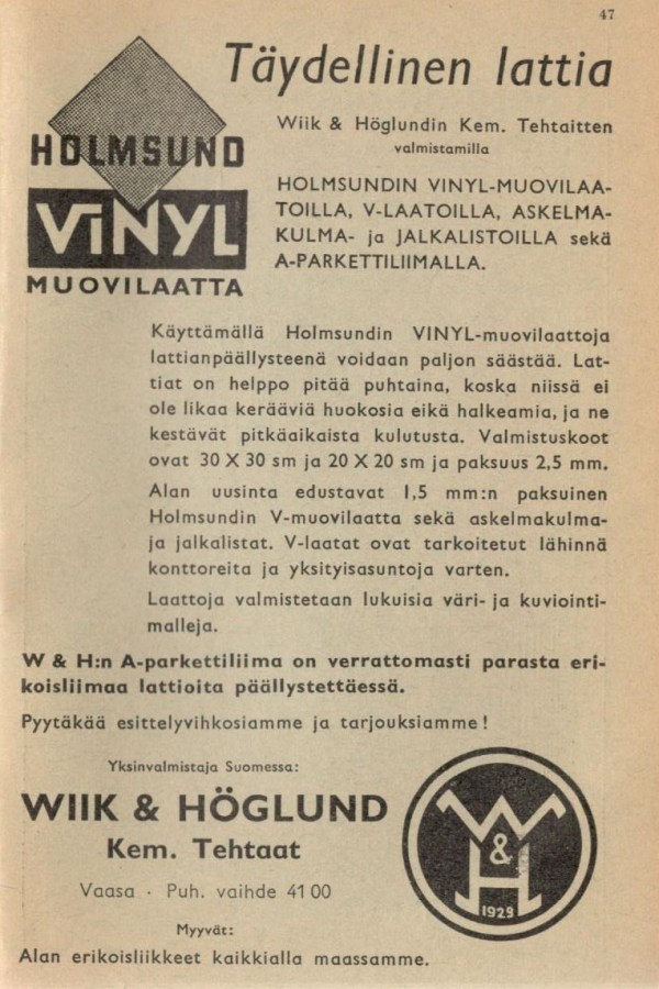 Muovilaatta. 1955
