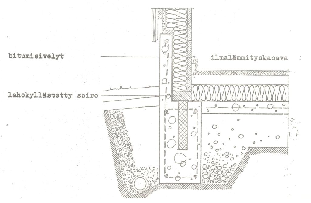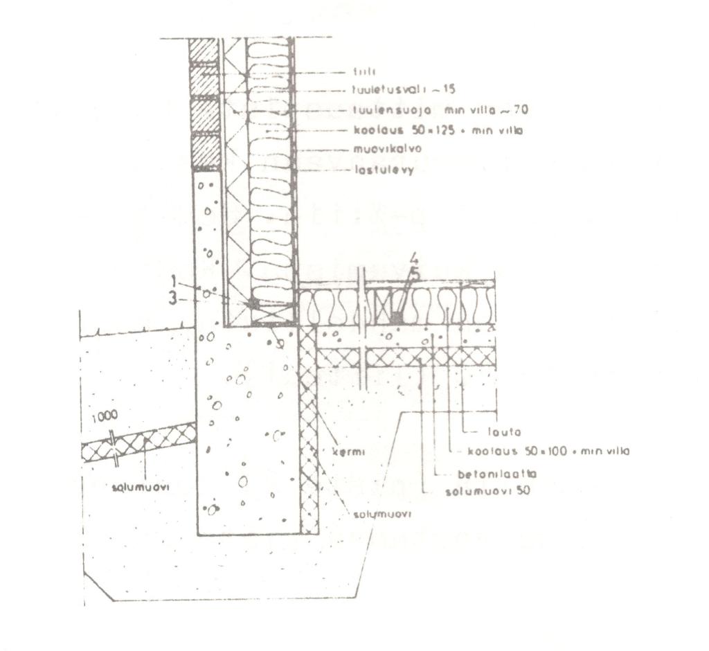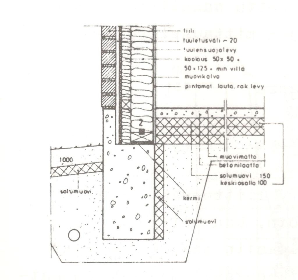 - Lämpöteknisesti kohtalaisen hyvä rakenne. Rakenteessa saatiin seinän ja lattian liitos hyvin lämpöeristetyksi ja melkoisen tiiviiksi rakennusajankohdan vaatimustasoon verrattuna.