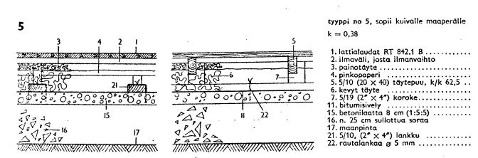 Kuva 2. Maanvarainen alapohja. Palkisto, puurakenteinen, RT 832.1 vuodelta 1943.