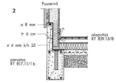 Kuva 6. Ulkoseinän alaosa maanvaraisalapohjaisissa rakennuksissa. Valesokkeli. RT 820.1 vuodelta 1957.