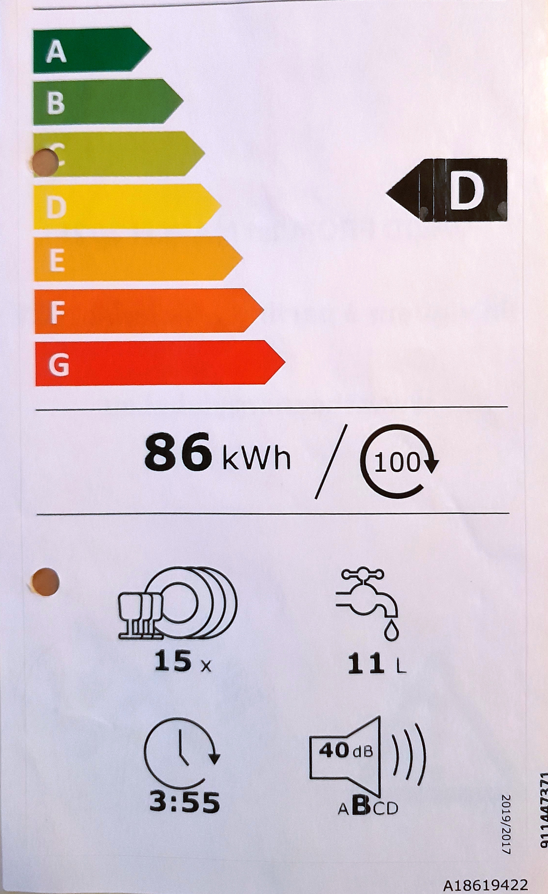 Erään melko uuden astianpesukoneen energiamerkintä. Energiaa säästävän ohjelman energiankulutus jää alle yhden kilowattitunnin.