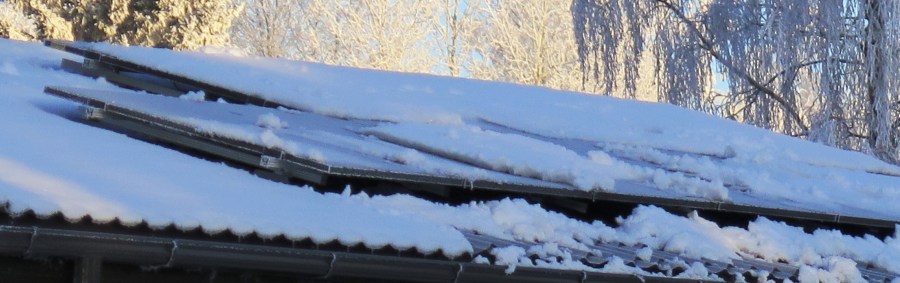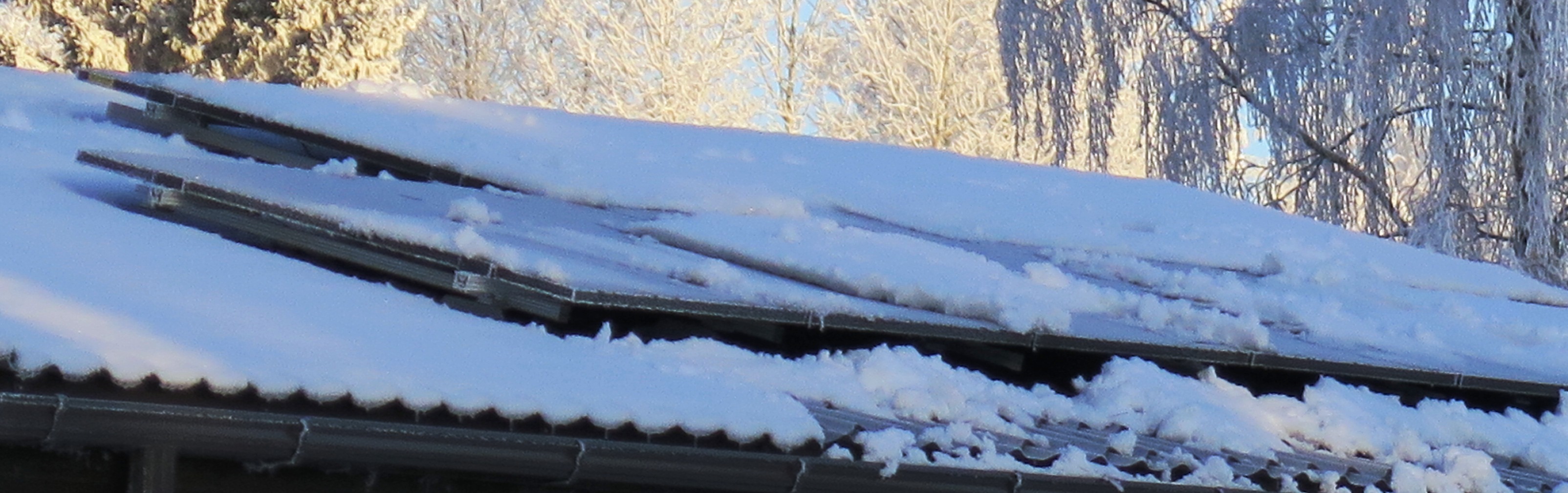 Aurinkopaneeli marraskuisena päivänä pientalon katolla.