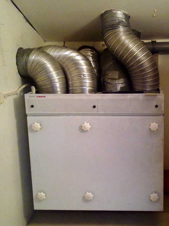 1990-luvun ilmanvaihtolaite. Varmatoiminen peruskone, mutta ehkäpä olisi jo syytä harkita vaihtamista uudempaan.