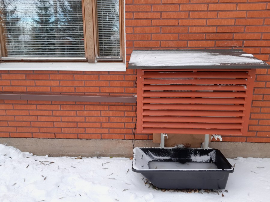 Ulkoyksikkö. Pulkassa kolmen päivän vesikertymä.