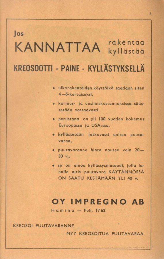 Puun kyllästys. 1955