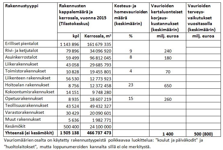 Rakennuskannan määrä ja siinä esiintyvät kosteus- ja homevauriot
