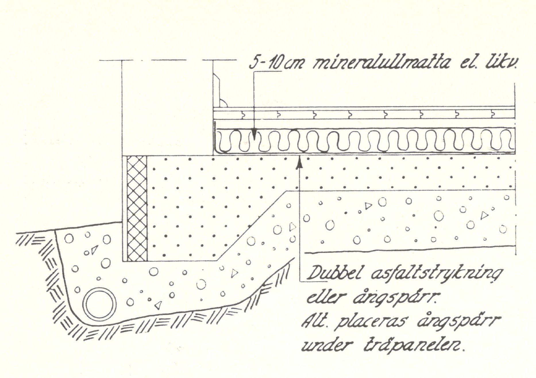 Matalaperustus ruotsissa. Tuulettumaton lattiarakenne. Koolattu puulattia, jossa höyrynkulku on betonin pinnassa tai lattialautotojen alla. Betonilaatan alla tuli olla kapillaarikatkokerros. Erikcsson 1960 (1956). Sittemmin tämän tyyppinen lattiarakenne johti laajoihin vaurioihin Ruotsissa.
