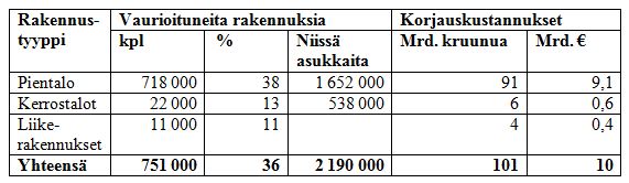 Vauriomäärät ja vauriokustannukset Ruotsissa